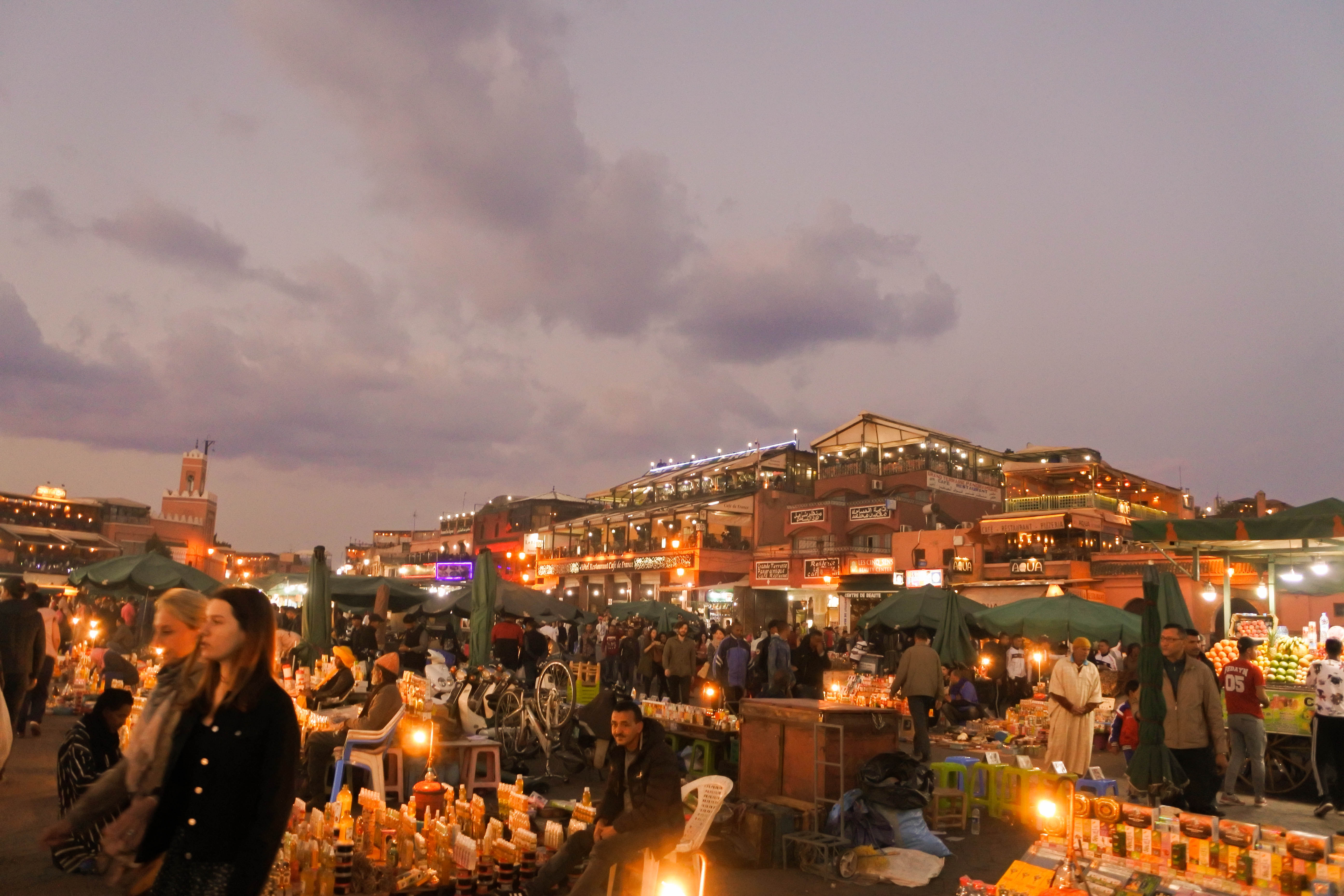 In de avond belandde we op het alom bekende plein van Marrakech: het Jamaa el Fna-plein. En overweldigend was het zeker weten. Overal waar je keek waren er toeristen en artiesten die zoveel mogelijk geld probeerden te verdienen. Slangenbezweerders, henna tatoeëerders, muzikanten en sapjes, heel veel sapjes. Bij restaurant Zeitoun streken we bovenop het terras neer en keken we, al smullend, over het steeds drukker wordende plein. En met een volle buik keren we huiswaarts.